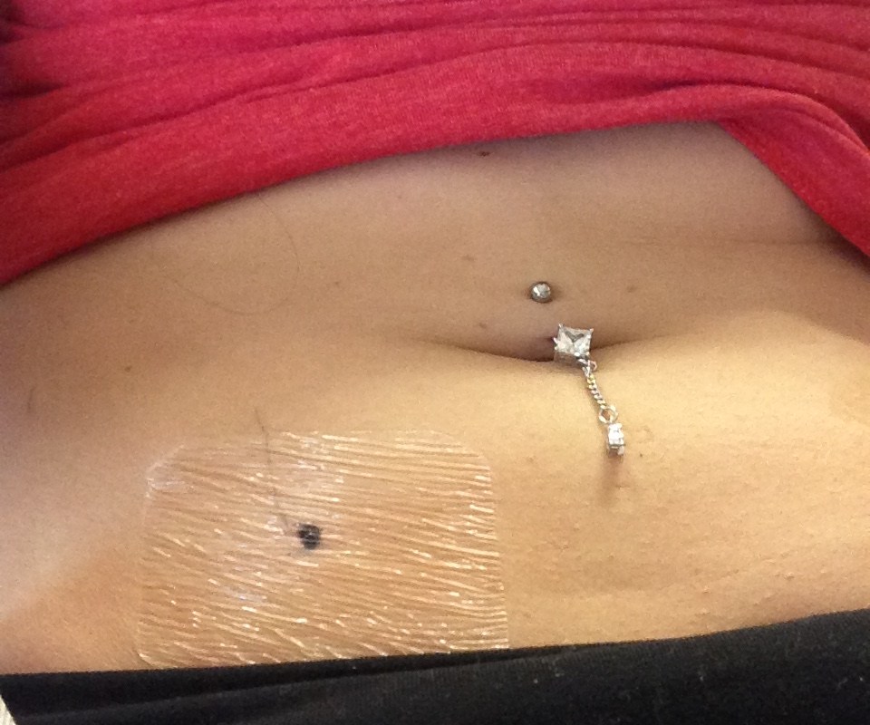Then the stoma nurses came. The first one was there to measure out a placement for the stoma. She used 4 fingers to the left of my bellybutton and 4 fingers down. They mark the spot while I’m lying down and then again when I’m sitting to make sure it’s not placed in any creases. The second nurse stayed with me for almost an hour giving me a stack of literature and information. She also gave me a little bag of supplies and samples used to change the bag. We went though the process and then she had me practice on a dummy stoma. It didn’t seem too hard and she was reassuring that she would be with me all next week to help during my recovery.