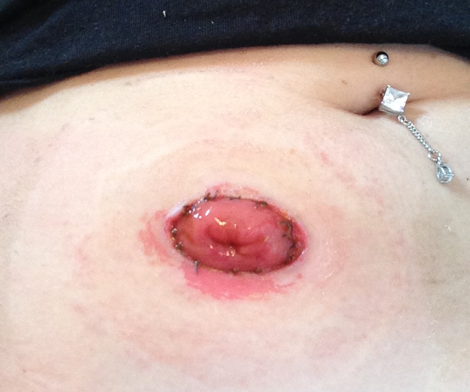 So after an hour I decided I need to put something on because I couldn’t keep sitting on the toilet with a waterfall of liquid pouring out from my stomach. Knowing the flange would likely not stick because the skin was still damp and irritated I used the Hollister paste in an effort to not waste an Eakin ring. This seemed to get me through the night and I contacted my nurse as soon as I woke up. I decided it was probably safer to take the day off incase of a leak and so that I could meet with my nurse as soon as she was available. By 10:30 she was here (bless her) and we changed the whole thing again…for the fifth time this week.