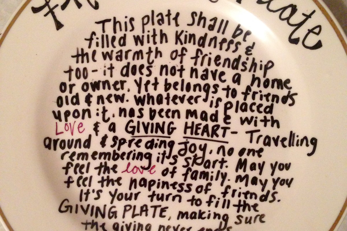 So in my best efforts I was able to make Dollar store Giving Plates. They didn’t cost a lot, and didn’t take a lot of time. And most of them were given empty in an effort to display the poem. But I assure you each Giving Plate that I handed out was filled with my love, my affection and my thanks.